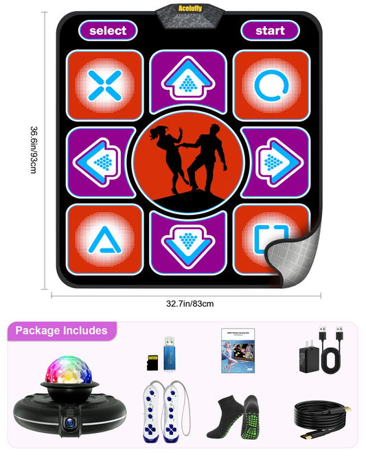 Single Dance Mat for Kids & Adults, Dance Floor Mat with Wireless Handle, HDMI Dance Step Pad Game for TV,Dance Pad with HD Camera