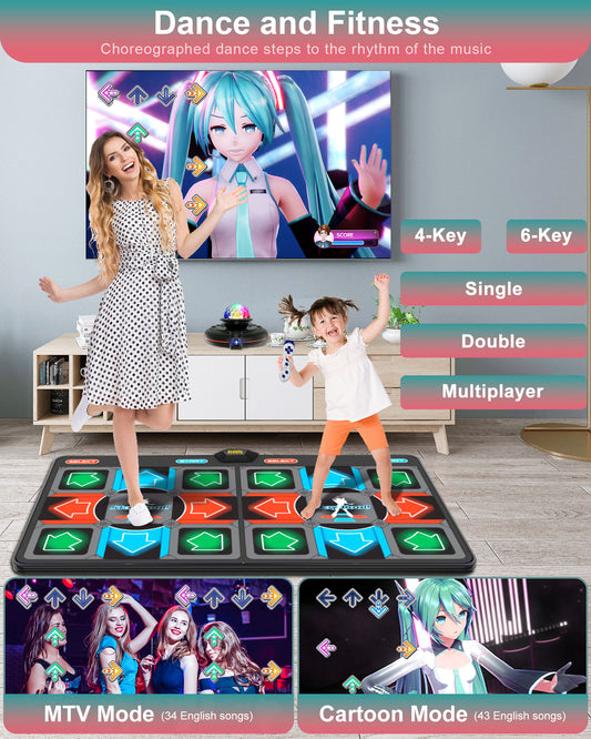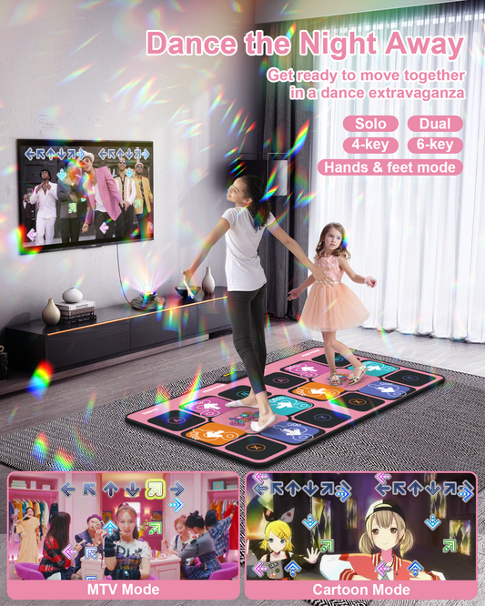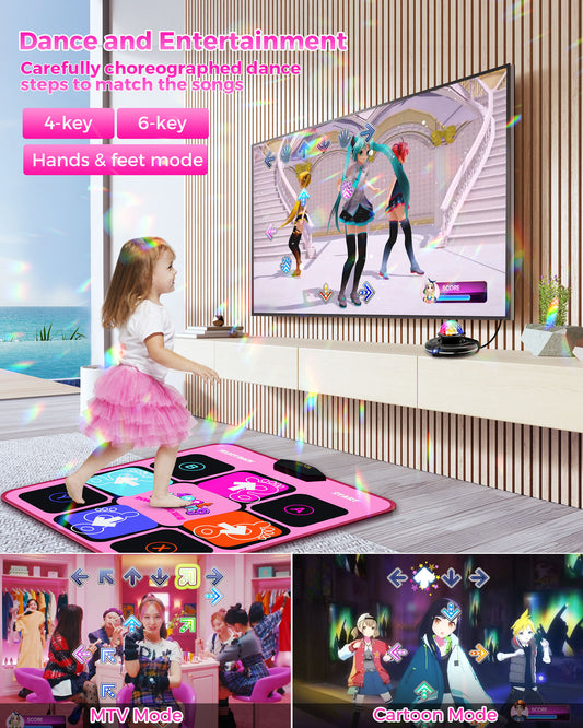 Rechargeable Dance Mat Toys for Girls, Light Up Dance Pad with Wireless Bluetooth, 5 Game Modes, Adjustable Volume & LED Lights, Xmas B-Day Gifts for 3-12 Years Old Kids (Pink)
